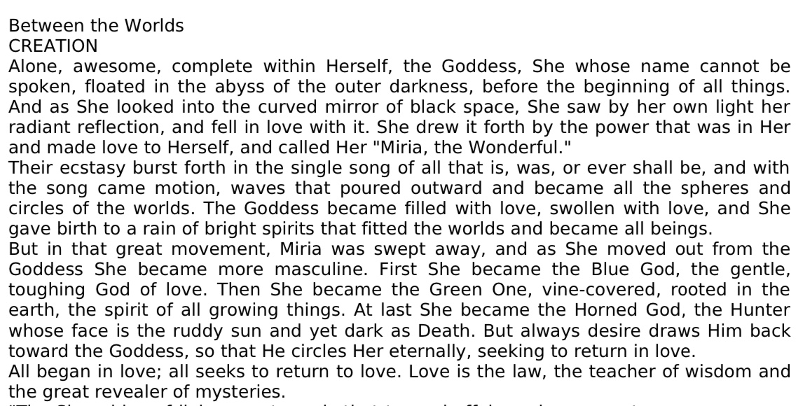 My religion was created in the thirties by a civil servant and went public in the fifties when they repealed the Witchcraft Act. So for all it was part of the New Forest melting pot of revolutionary ideas it believes in a God and a Goddess and gaining magical/spiritual power through straight sex, albeit sometimes with a bit of light BDSM thrown in.